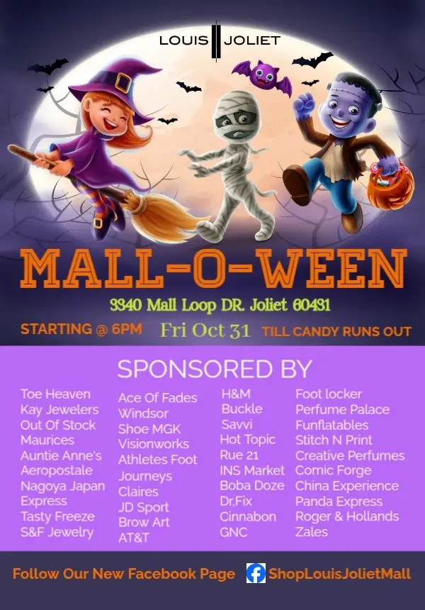 Come trick or treat at our Mall-O-Ween! 6 PM till candy runs out!